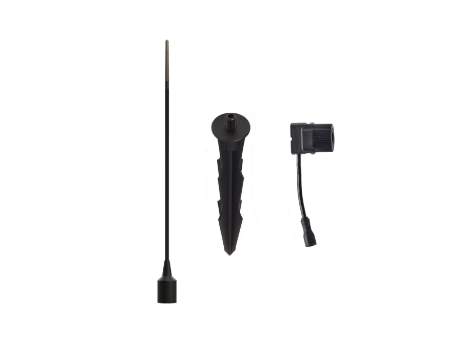 BREEZE wird komplett in einer Verpackung geliefert. Drehen Sie den Erdspieß an der Unterseite der Leuchte und stecken Sie die Leuchte in den Boden. Ist der Boden hart? Dann schlagen Sie zuerst den Erdspieß in den Boden und drehen Sie anschließend die BREEZE darauf.