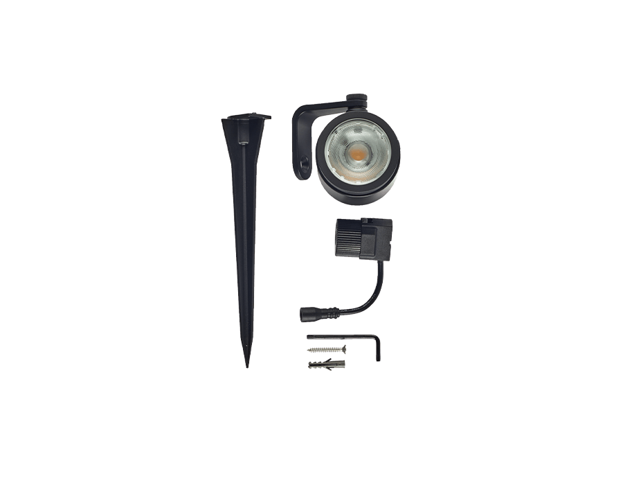 The focused light from the SCOPE LED outdoor spotlight highlights special places in the yard such as trees, shrubs, statues and facades up to 8 meters away.This small spotlight is delivered with a bracket and ground stake.
