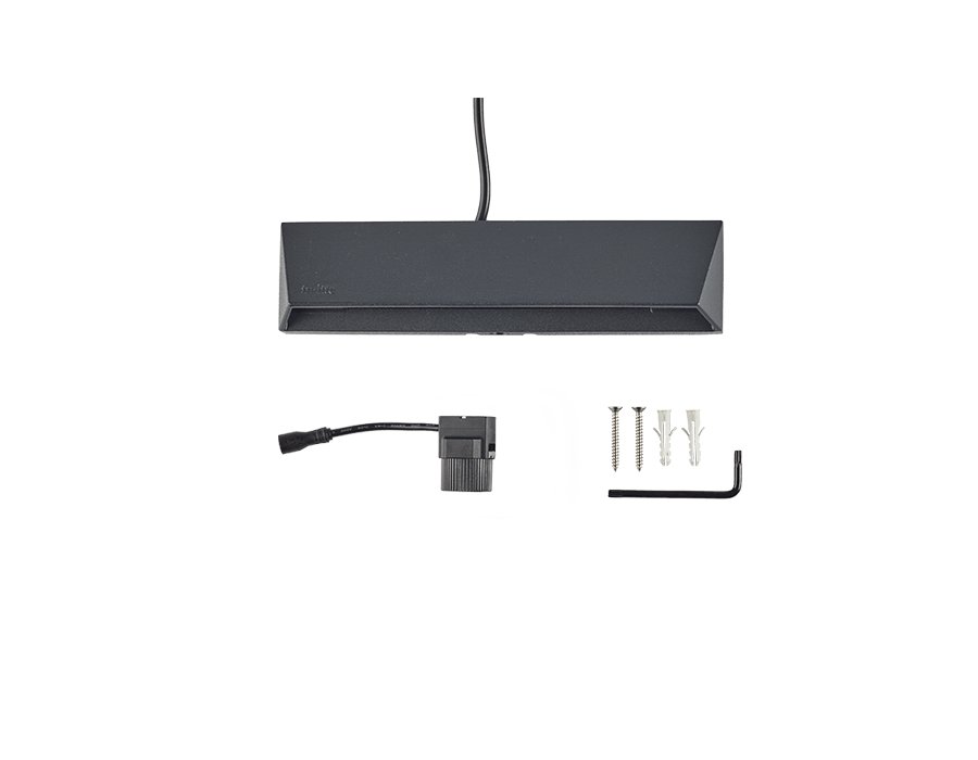 The WEDGE SLIM DARK is a slim wall fixture with a wide light beam that is perfect for use as directional lighting on, for example, low walls or along driveways or paths.The EASY-LOCK is supplied as standard with this luminaire. The cable length on this luminaire is 60 cm.Tip: Think of an extension cable