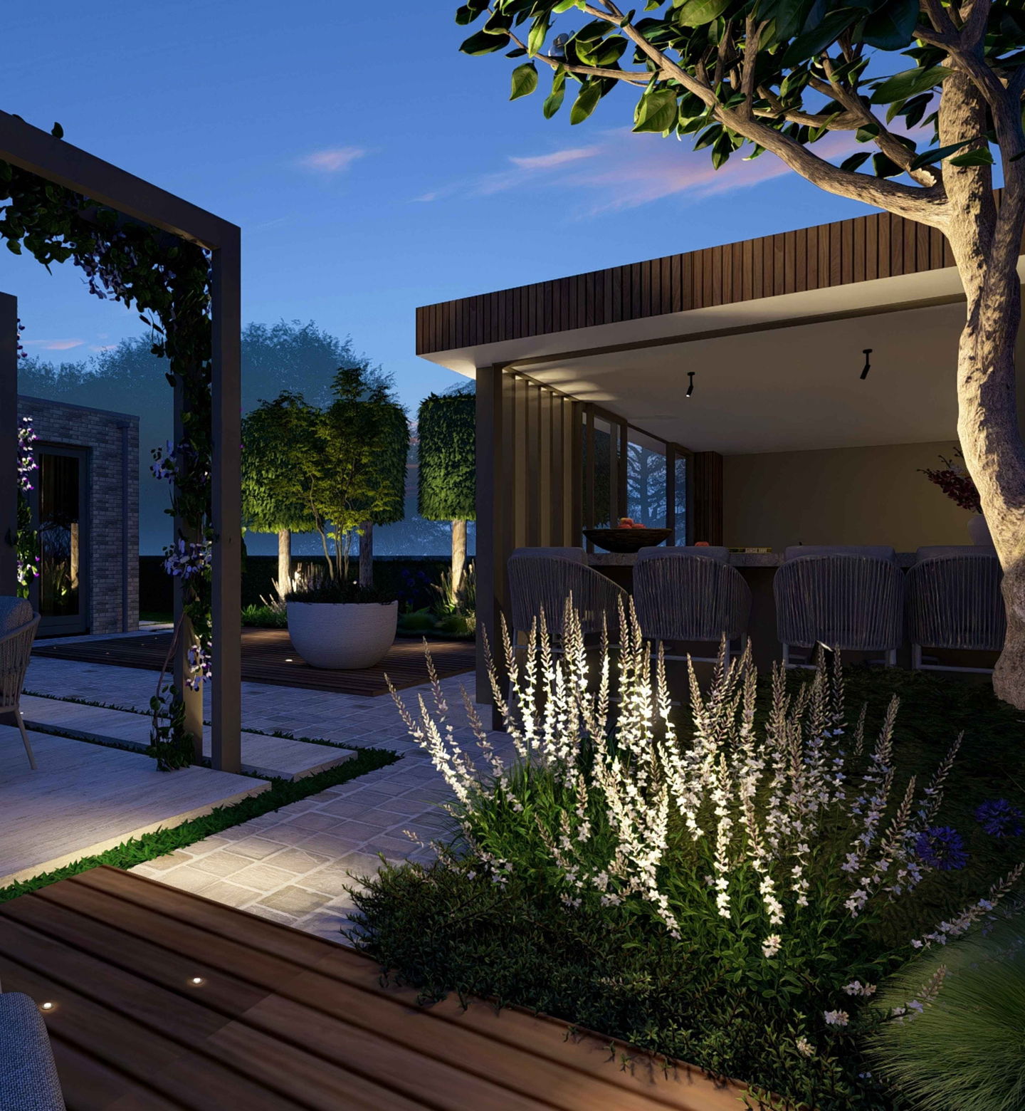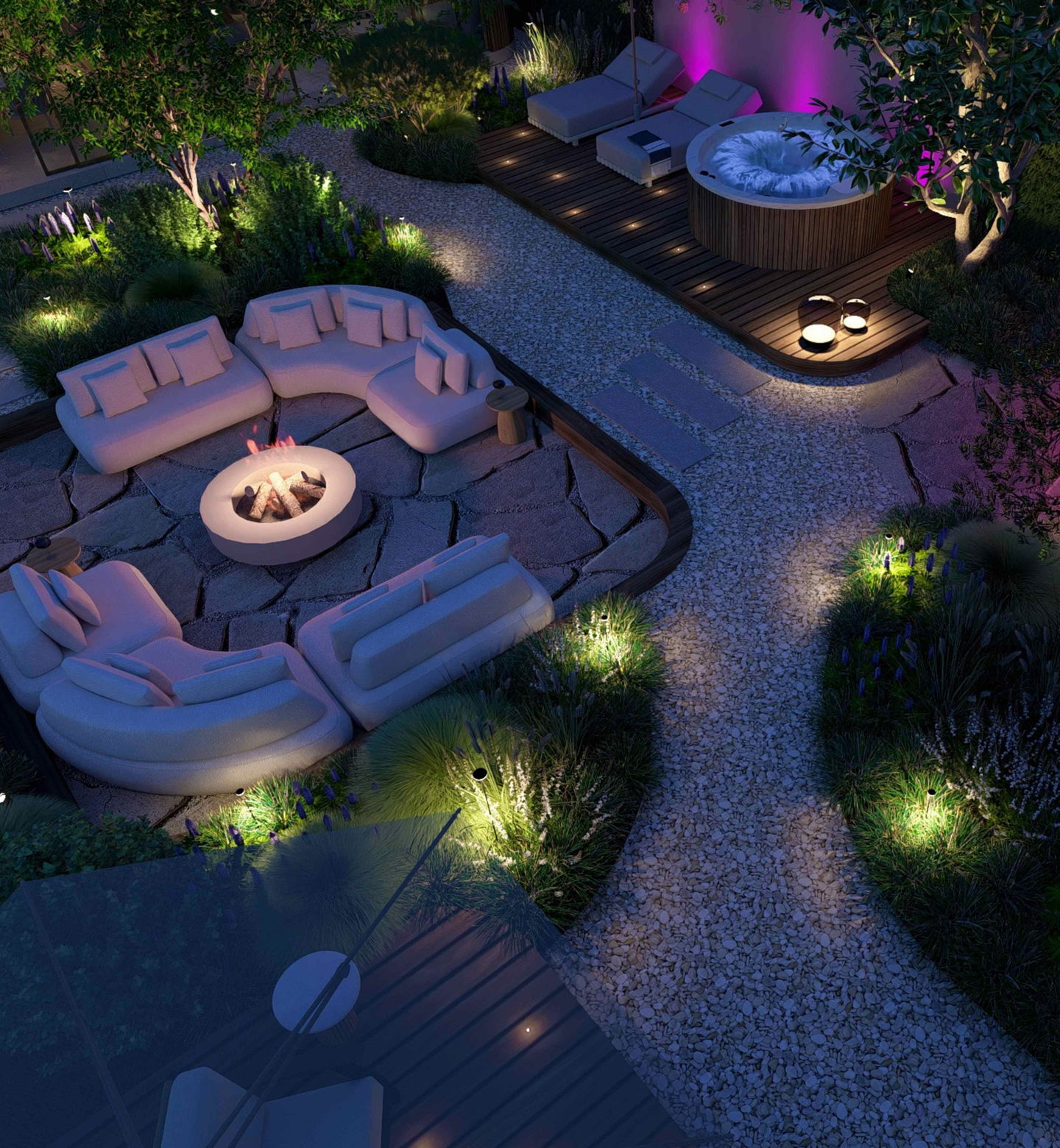 Discover what high-quality garden lighting can do for your garden! At in-lite, we create 2D and 3D lighting plans that perfectly match your garden design and the atmosphere you want to create. Our lighting specialists will put together a clear plan, including atmospheric impressions and recommendations of fixtures. So you know exactly how your garden will come to life at night.