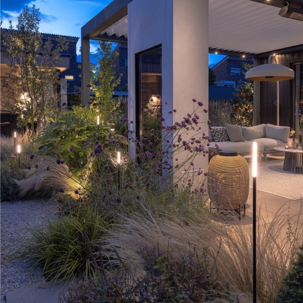 BREEZE offers endless possibilities for garden design. With the different heights of 24 inches (60 cm) and 39 inches (100 cm), you get a playful and layered lighting plan. Additionally, its slim design makes it easy to use between tall ornamental grasses, in low borders, or even in large planters on the hardscape.