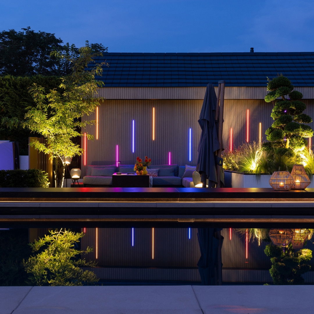 Whether you're enjoying the view of a stunning garden from inside or love spending time outdoors late into the evening, the EVO concept offers the perfect solution. It allows you to create not only sleek borders, steps, and façade lighting but also unique, artistic shapes in your garden. Part of the magic of the EVO concept lies in the product's flexibility, making it adaptable to any desired shape and location. Additionally, the outdoor lighting features a ‘diamond cut lens’ that evenly and beautifully spreads the light. The anodized housing not only gives EVO a premium look but also makes the fixture extremely weather-resistant. The EVO concept includes path lights, outdoor wall lamps and line lights.