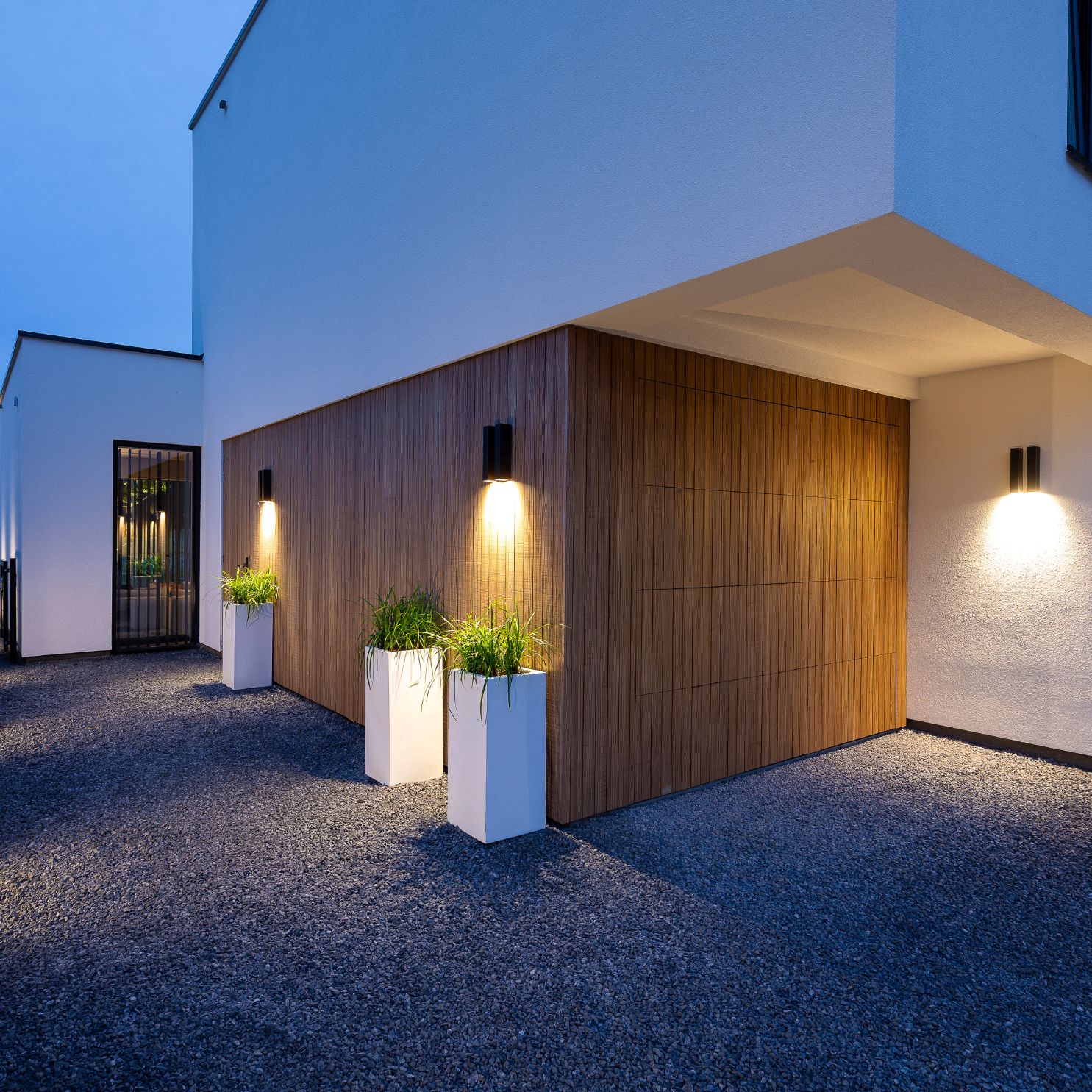 Facade lights are specialized landscape lighting fixtures designed to illuminate walls, facades, and building exteriors. They not only enhance the architectural appeal of your home but also add practical functionality. For instance, well-placed outdoor lighting makes it easier to locate the keyhole and get inside quickly during a sudden downpour. Delivery drivers will also benefit from properly lit house numbers and nameplates, which become easier to read from a distance.