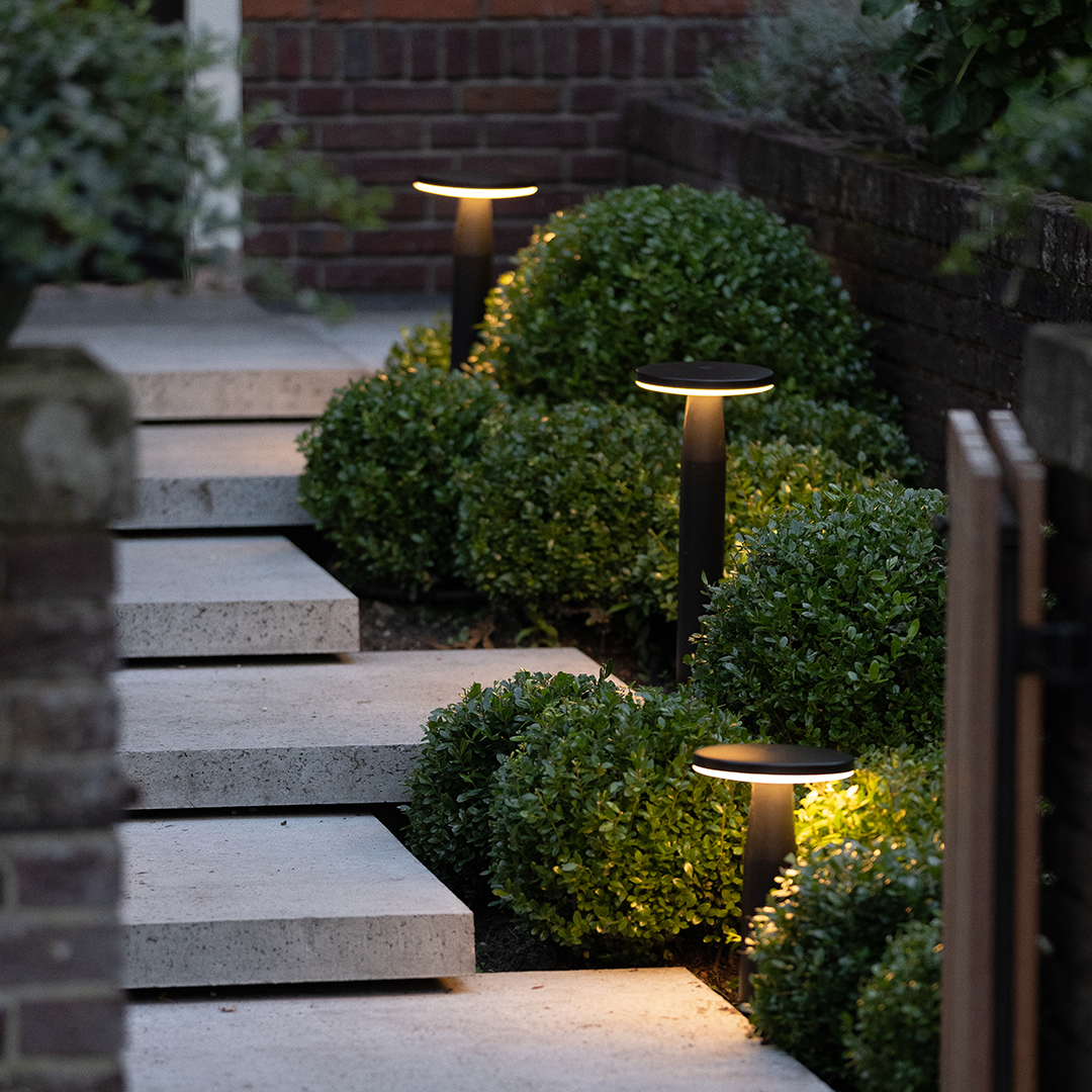 LIV path lights provide warm, ambient light, ideal for pathways and borders. Available in various heights and finishes, including Rosé Silver, they create stunning effects when spaced 2 to 2½ meters apart.