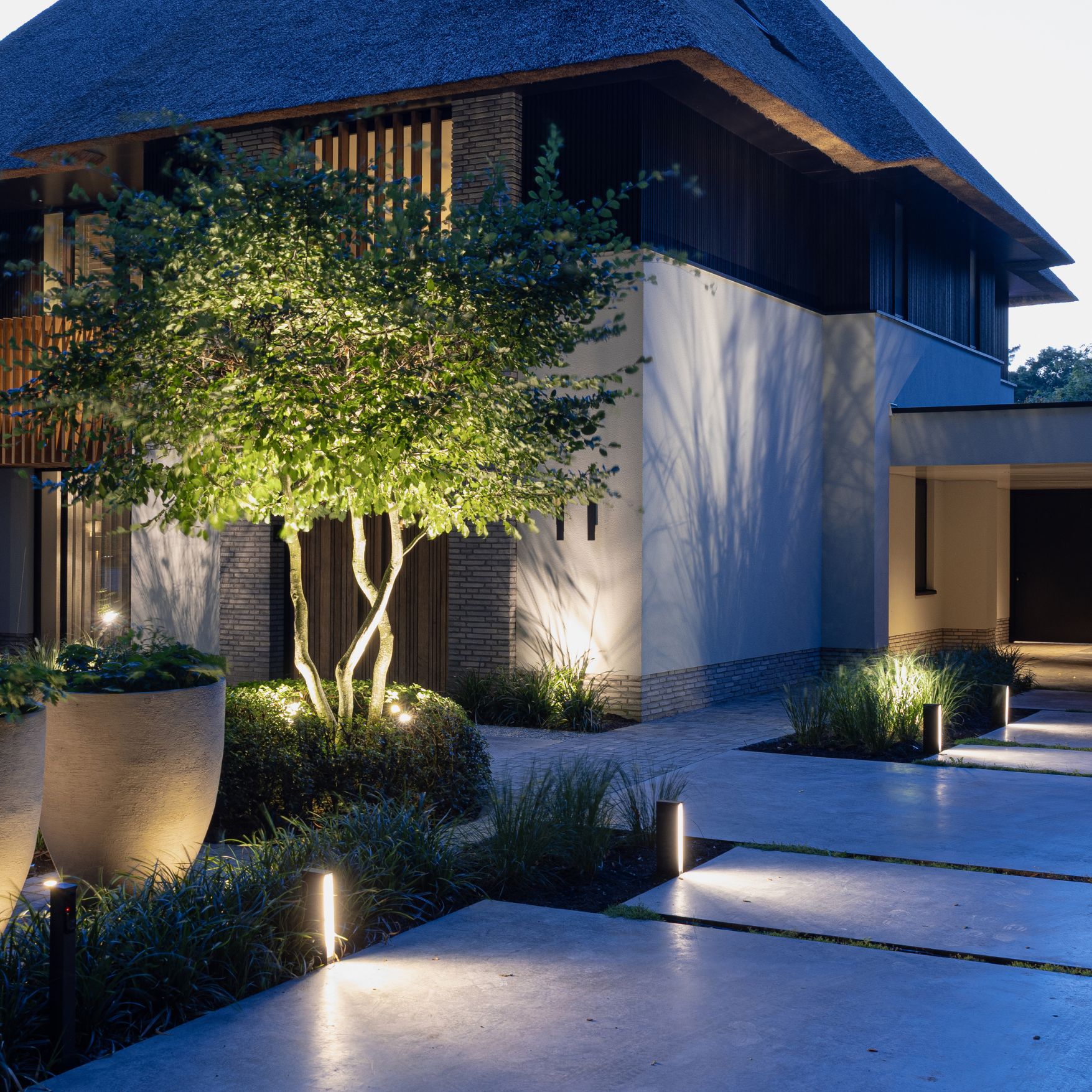 Freestanding fixtures such as EVO and ACE illuminate paths and driveways from a higher vantage point, lighting up a larger area and creating a warm, inviting atmosphere. They serve as stylish focal points that bring your garden to life in the evening while providing functional light exactly where you need it. By lighting paths and driveways, you not only enhance safety but also add depth and dimension to your outdoor space, making your garden a pleasant and welcoming place after dark.