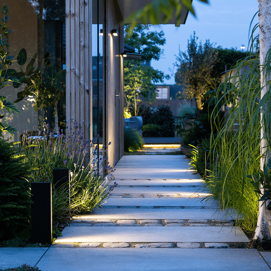 Of je nu van binnen uitkijkt op een betoverend mooie tuin of graag tot ’s avonds laat lekker buiten zit; met het EVO-concept creëer je naast de meest strakke borders, traptreden en gevelverlichting ook prachtige artistieke vormen in je tuin. De magie van een deel van het EVO-concept zit ‘m in de flexibiliteit van het product, waardoor deze in elke gewenste vorm op elke gewenste plek kan worden gebruikt. Daarnaast heeft deze buitenverlichting een ‘diamond cut-lens’ dat het licht mooi en egaal spreidt. De geanodiseerde behuizing geeft EVO niet alleen een premium look, maar maakt het armatuur ook extreem weersbestendig. Het EVO-concept bestaat uit staande lampen, wandlampen en lijnverlichting.