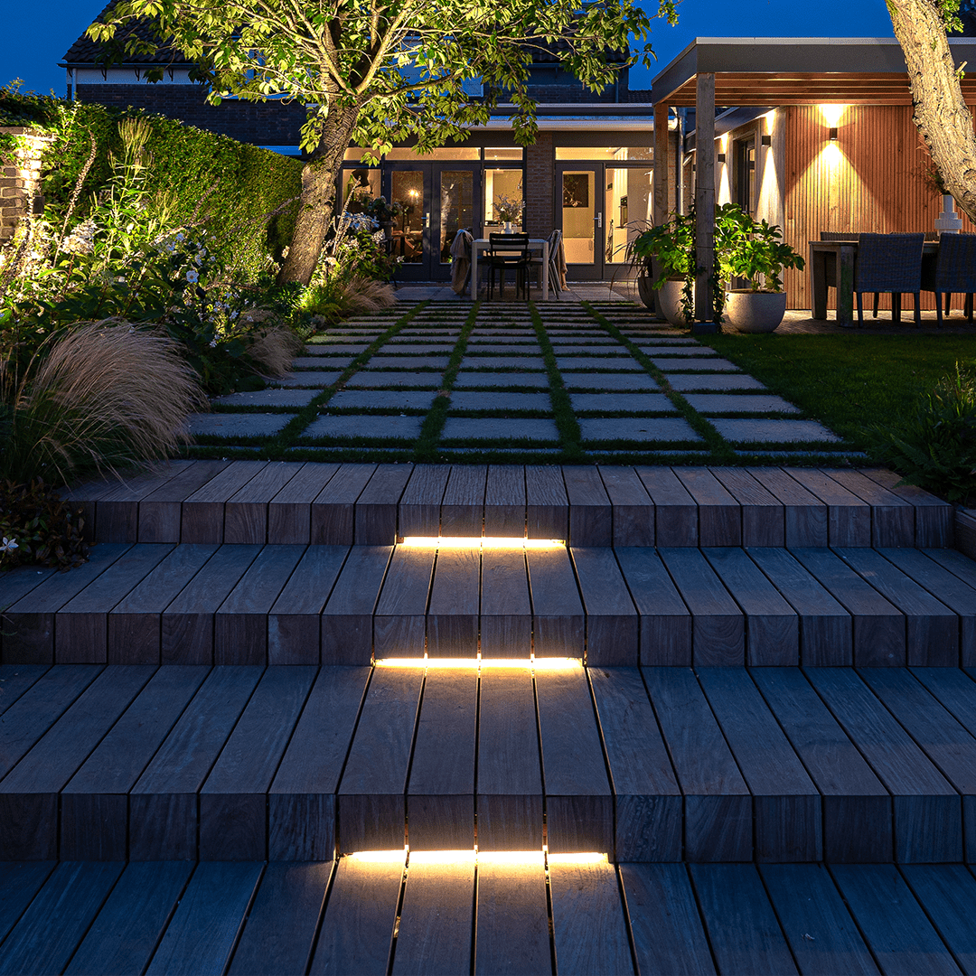 EVO HYDE en EVO FLEX vallen onder lijnverlichting. Beide buitenverlichting plaats je gemakkelijk onder traptreden, vlonders balustrades en (zit)muurtjes. Het verschil? Waar je EVO HYDE aanbrengt in strakke lijnen, creëer je met EVO FLEX een flexibele twist. Deze verfijnde lijnverlichting zorgt voor een andere invalshoek. EVO maakt jouw tuin écht af.