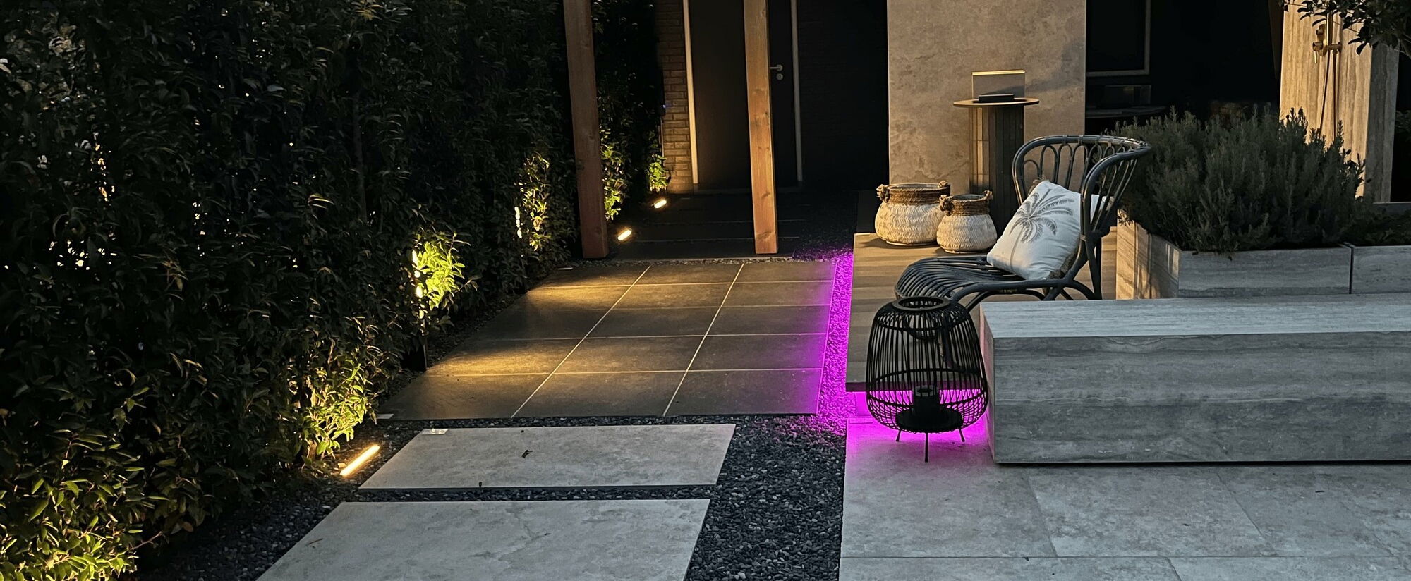 Dezelfde tuin, maar dan met de magie van licht. Wilt u uw tuin ook een stukje extra magie meegeven en nog langer genieten van een mooi aangelegde tuin?